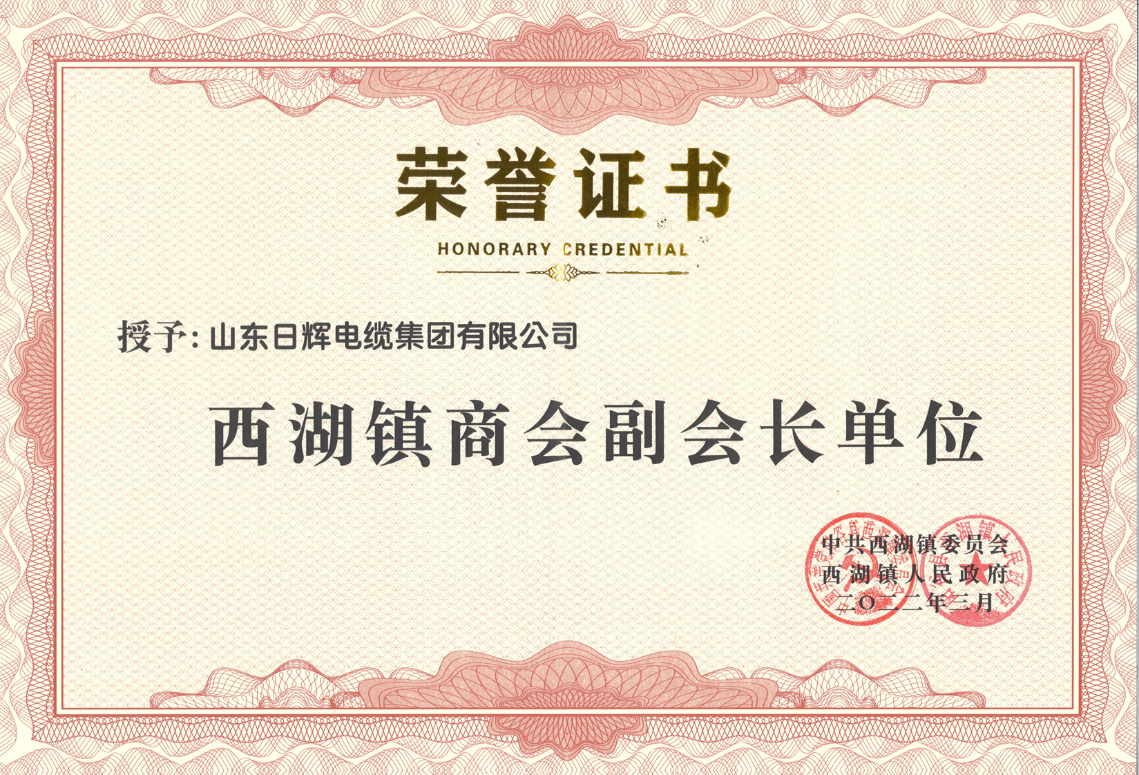 山東日輝電纜集團有限公司成為西湖鎮商會副會長單位并授予證書