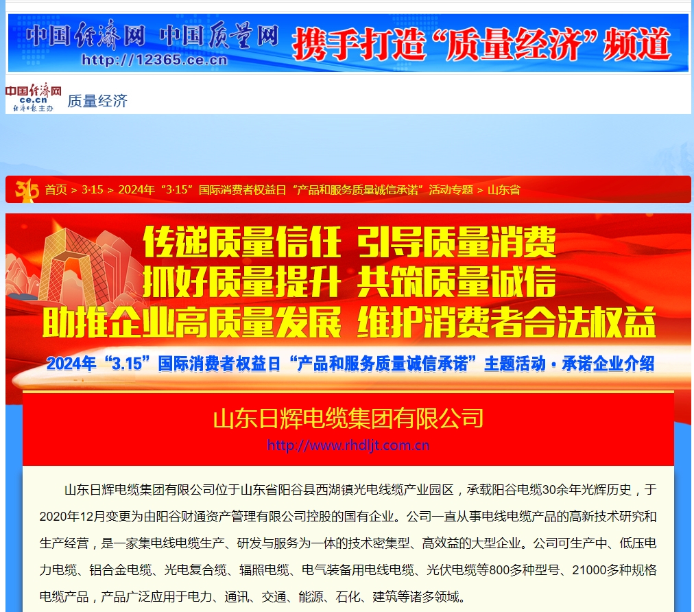 為構建誠信經營、公平競爭的市場環境,加強質量誠信體系建設,切實保證產品質量,維護消費者的合法權益,推動建設“質量強國”,日輝電纜向社會鄭重承諾: